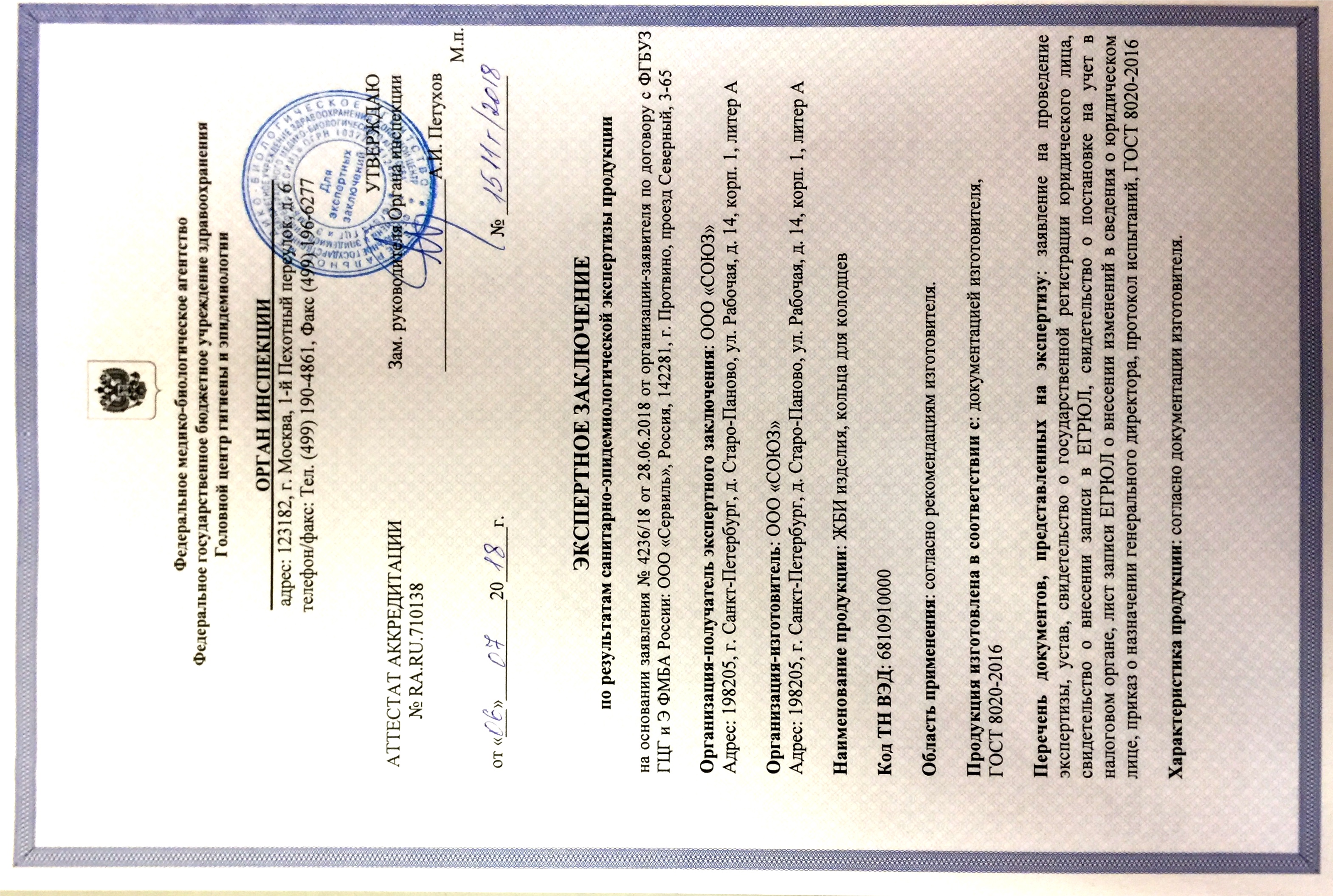 Экспертное заключение по результатам санитарно-эпидемиологической экспертизы продукции